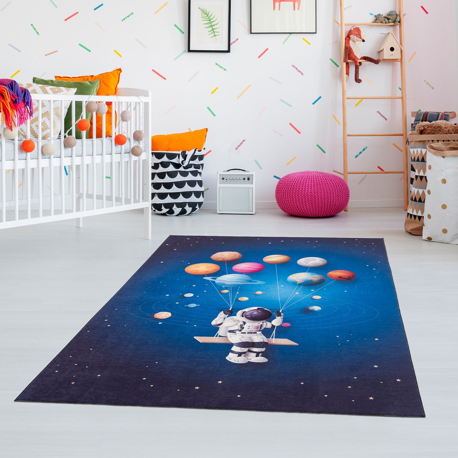 Kaymaz Taban Yıkanabilir Astronot Desenli Cocuk Halısi